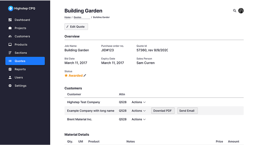 Unlike generic CPQ platforms, Highstep’s CPQ is designed from the ground up for construction suppliers. Because we understand your business, we build tools that actually fit how you work.